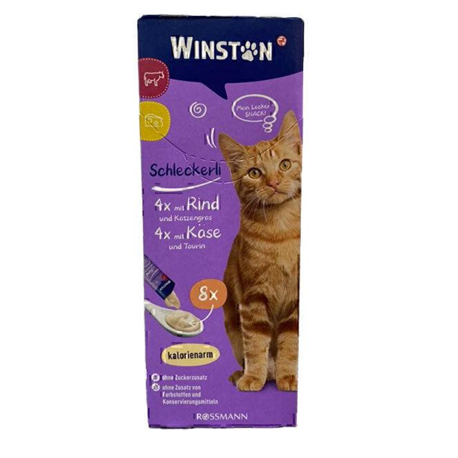 یک تشویقی برای گربه های بالغ، بستنی گربه وینستون یک میان وعده کم کالری، متنوع و خوشمزه برای گربه شما است. که از مواد غذایی خوشمزه مانند مرغ و ماهی ساخته شده و بسیار مناسب گربه های بد غذا میباشد. این بستنی سرشار از ویتامین E ، امگا 3 ، روغن ماهی ، تائورین (تقویت عضلات) و بیوتین (سلامت پوست و مو) می باشد.